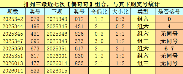 开奖转头:成列三第2026014期开奖号码为:833。奖号类型为:组三,大小类型为:大小小,奇偶类型为:偶奇奇,无重号。